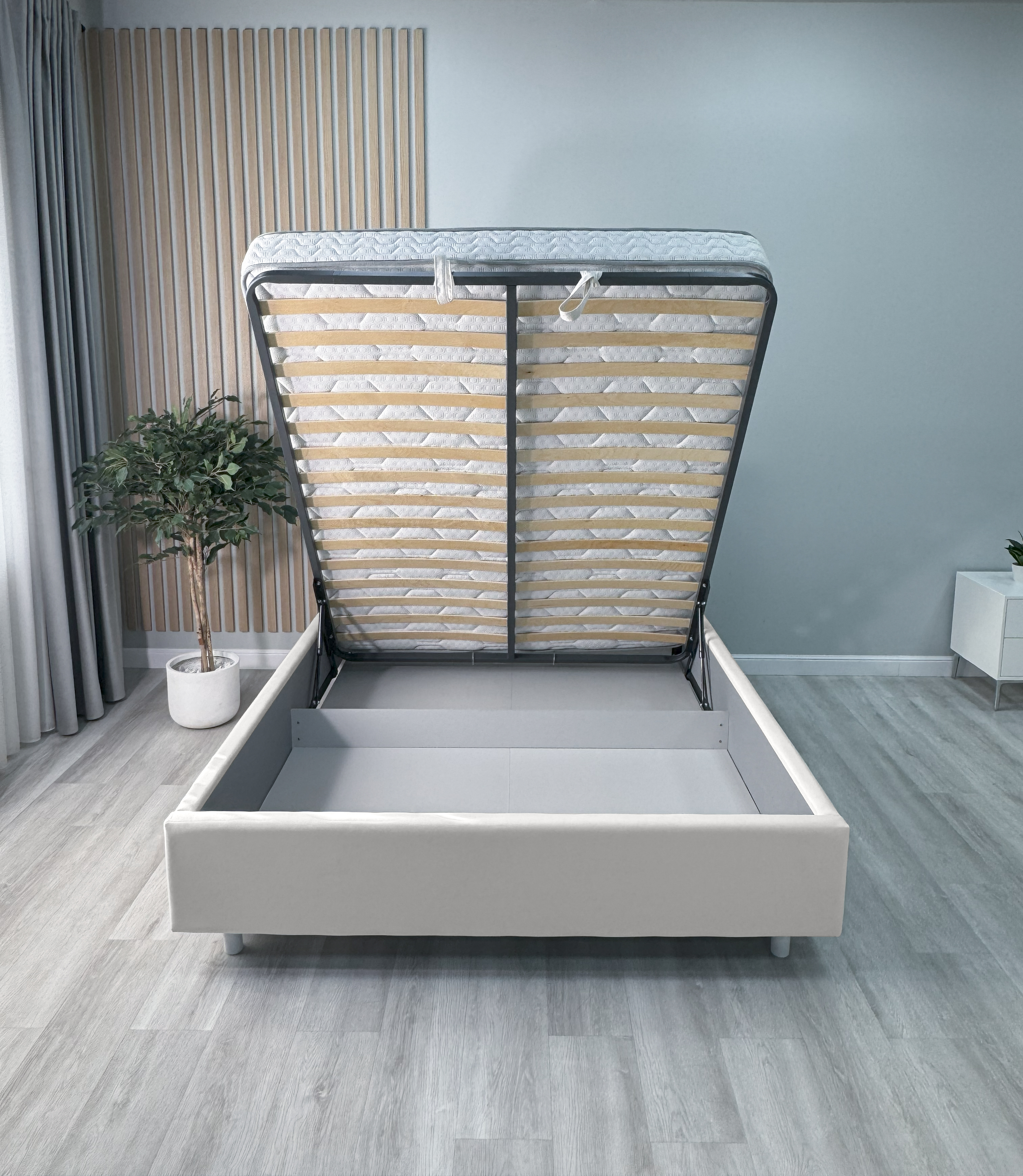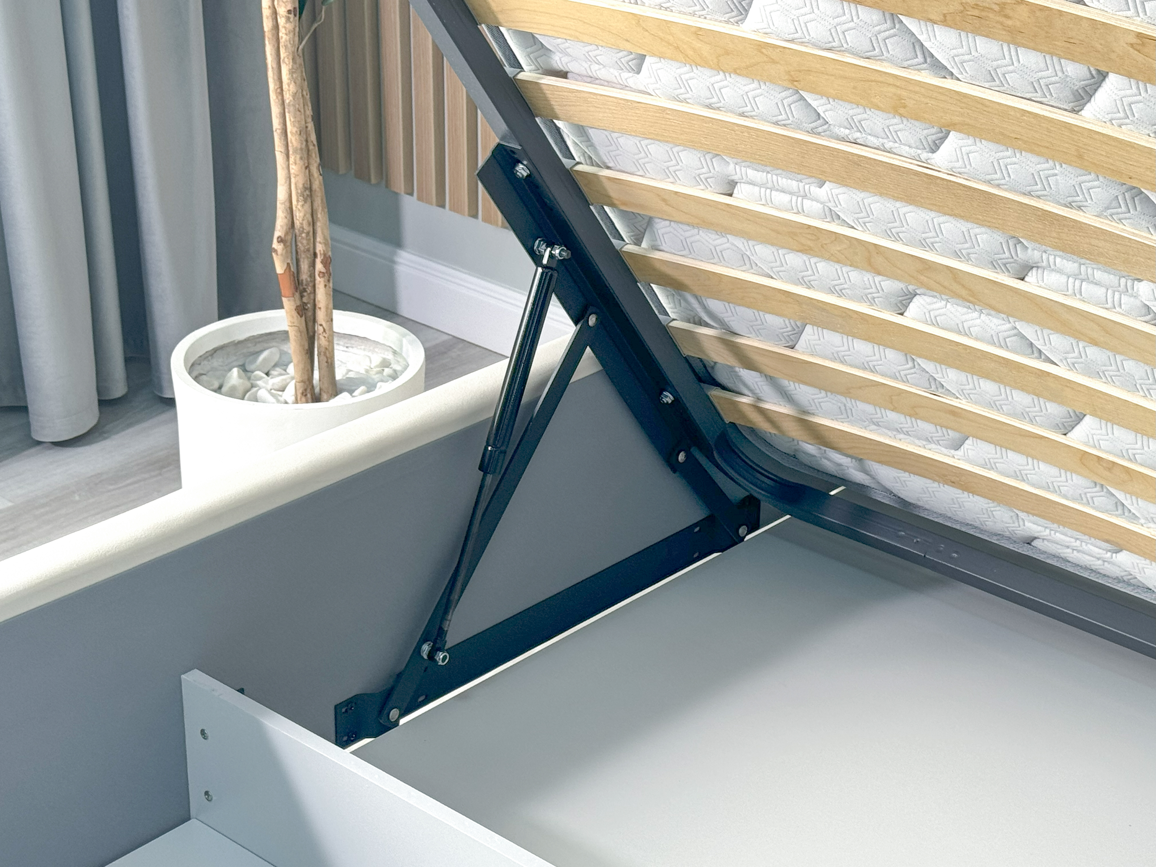Усиленные подъёмные механизмы выдерживают матрасы весом до 100 кг